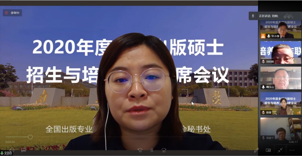 12月27日,由挂靠我校的全国出版专业学位研究生教育指导委员会秘书处主办的2020年度全国出版硕士招生与培养工作联席会议以腾讯会议的方式召开。国务院学位办研究生培养处刘帅副处长,我校研究生院副院长张亮教授,出版教指委副主任委员、成人漫画