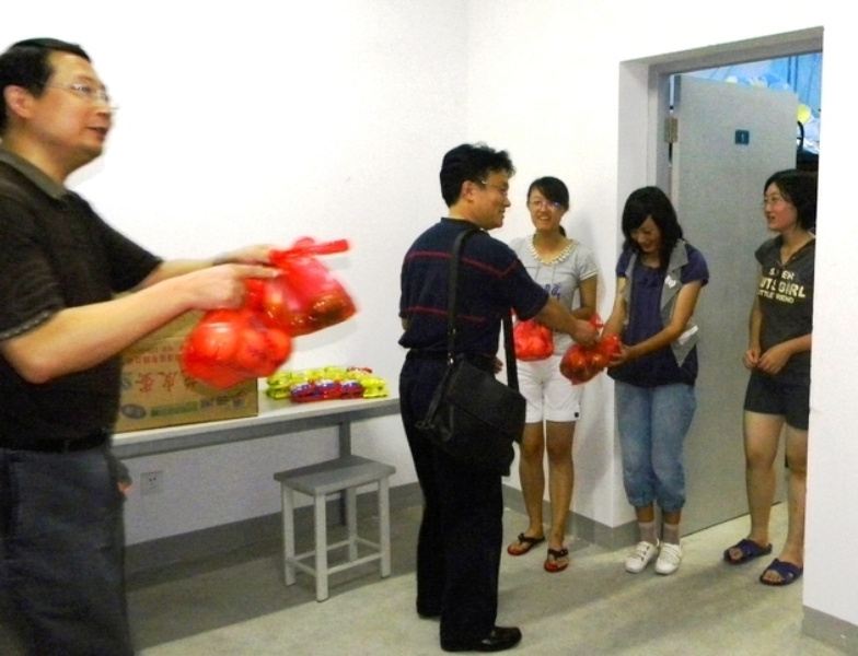 919日,在中秋佳节来临之际,信息管理系系主任孙建军、党委书记江莹、党委副书记戴咏梅一行来到仙林校区新生宿舍,为2010级新生带来了节日的问候。