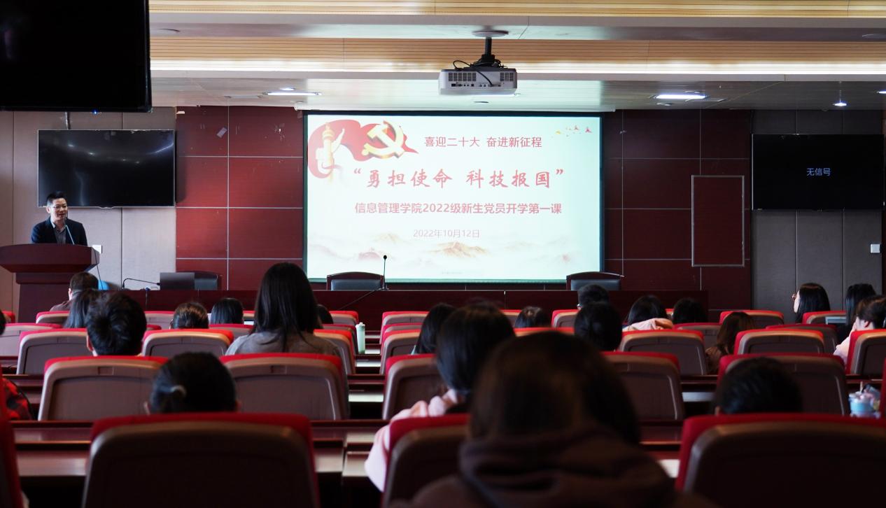 入学教育活动第二部分由学院党委书记、中国历史唯物主义学会副会长姜迎春教授为全体党员讲授《坚定科学理论信仰 喜迎党的二十大》专题党课。