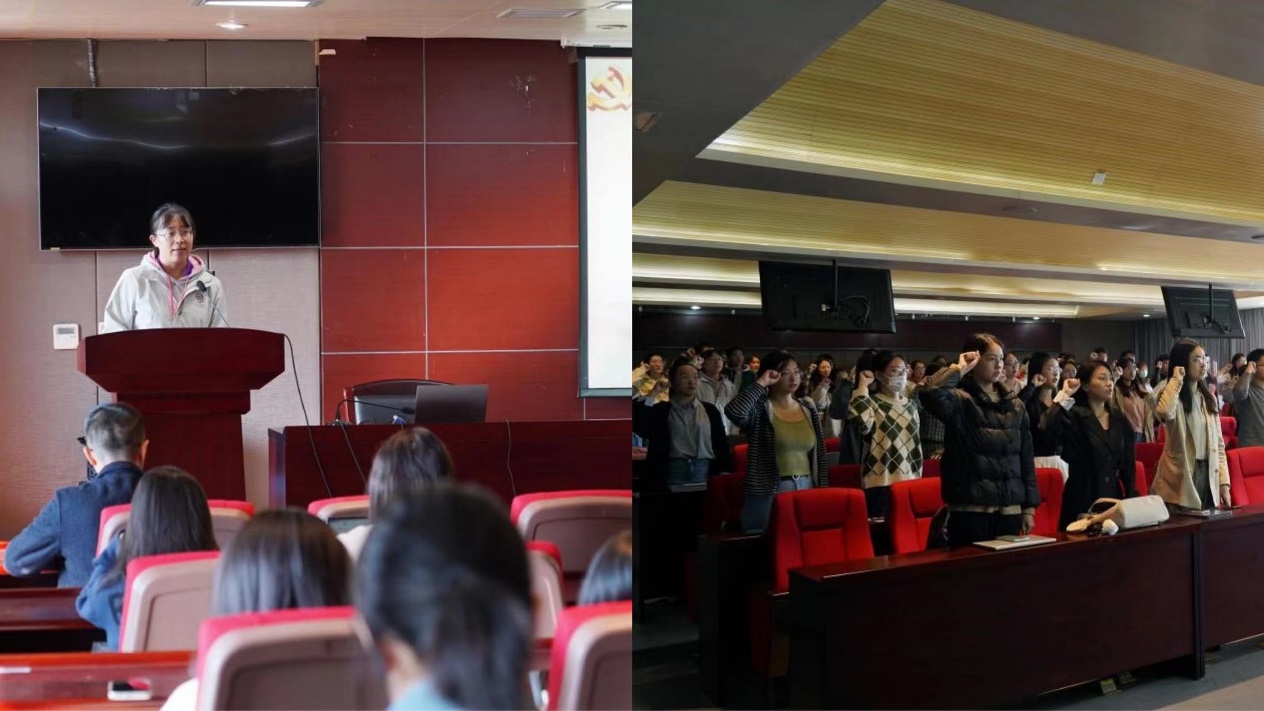 本次主题党日活动第一部分聚焦“如何做一名合格的党员”。党委秘书、专职组织员朱敏围绕《严肃党的组织生活,提升党组织组织力》主题发言。她首先对党内生活主要形式与要求展开介绍,然后强调新生党员要以思想为导向,认识上坚守组织性、行动上保持纪律性,积极参加党组织生活,巩固好党支部的战斗堡垒作用。