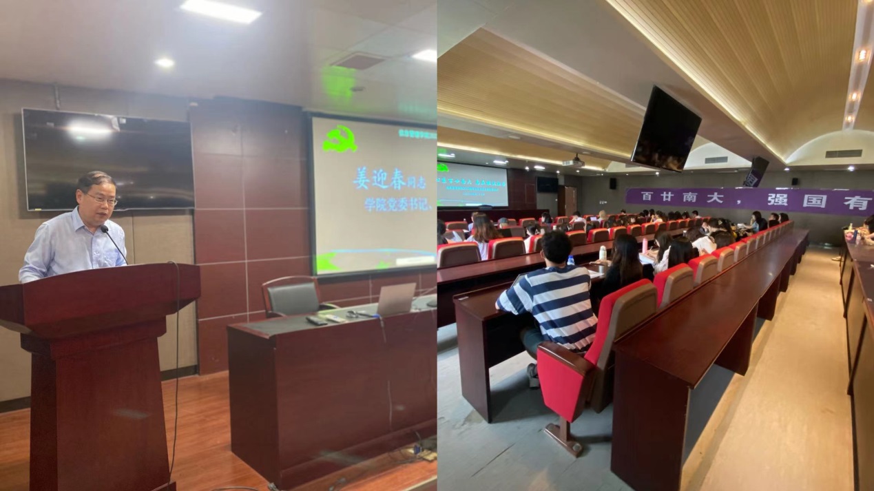 姜迎春同志以“感知时代 走在前列”为题给同学们上了一堂精彩的微党课。他首先代表全院教师祝贺同学们顺利毕业。他说,“生逢伟大时代,各位党员要感知马克思主义在中国的新发展,社会主义理论在时代的新进步,这些新变化与习近平总书记的新思想和新运用是息息相关的”。他代表学院党委着重从三个方面勉励大家:要用马列思想中国化的成果时刻武装自己头脑,增强本领;要将四个意识内化为日常行为的规范和要求,应对时代的新挑战;要牢记党员身份,时刻保持优秀的道德品格,勇于向上攀登,与时代共发展。