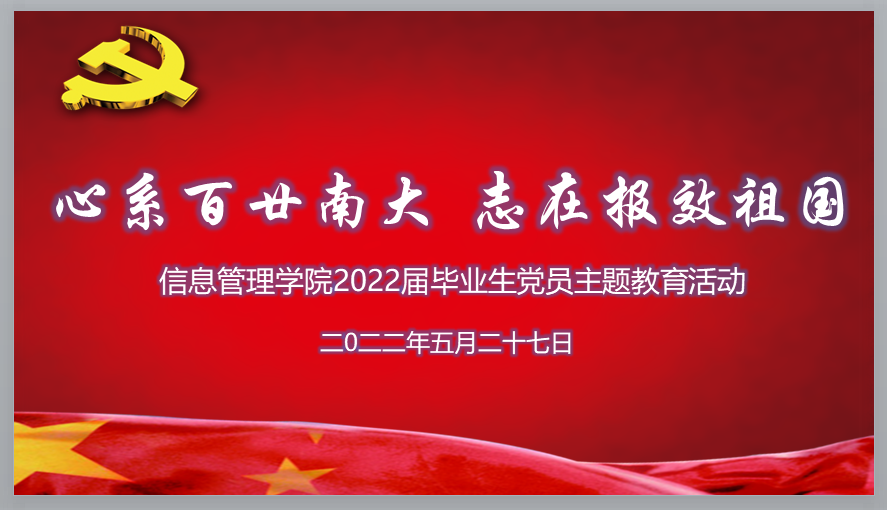 活动进入尾声,全体党员重温入党誓词,集体奏唱《国际歌》。愿信管学院全体毕业生党员乘风破浪,直下看山河。