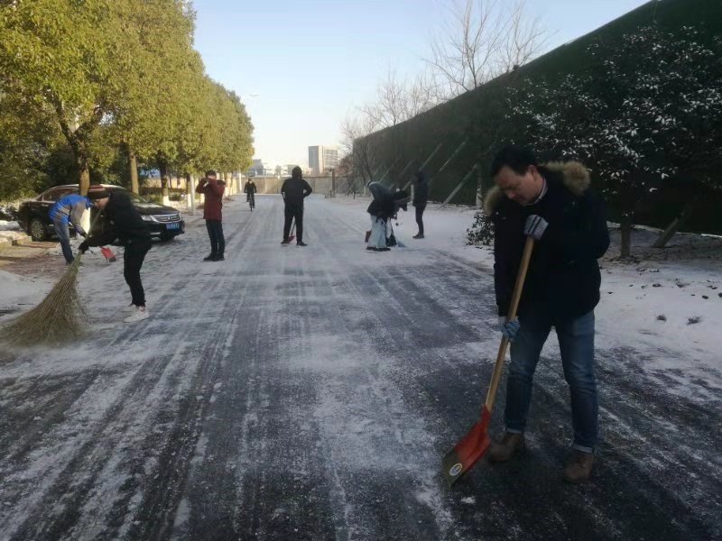 李高杰老师带领下,一大早便开始了一场扫雪除冰活动,为我校师生共建安全畅通出行环境。