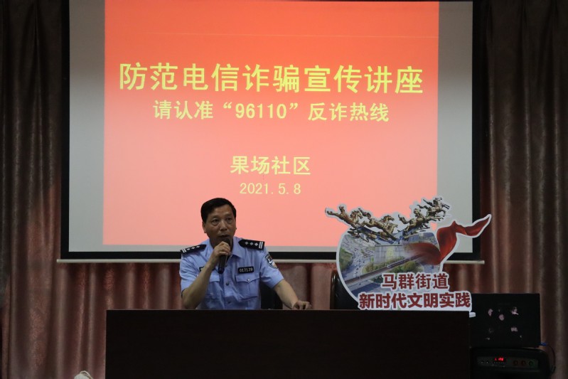 接着由果场社区的民警开展了一场防范电信诈骗宣传讲座,为我们讲述了生活中常见的电信诈骗案例以及“96110”反诈热线,此次讲座增长了与会人员关于防范电信诈骗的知识。