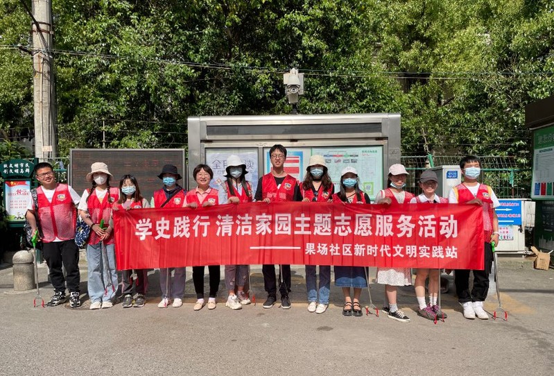 2020级出版专硕团支部联合中共果场社区总支委员会、南京市太阳城小学在5月8日下午开展——劳动月“党团共建 青年立志”主题学史践行志愿活动。