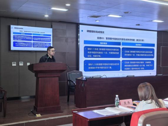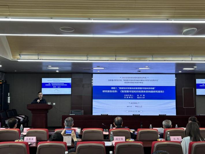 在项目研究报告专家评审会上,成人漫画 教授赵宇翔作题为“智慧图书馆知识检索体系构建研究报告”的汇报,他从任务书要求、研究报告主要内容、与项目其他任务的支撑关系三方面,向与会专家介绍具体工作情况。