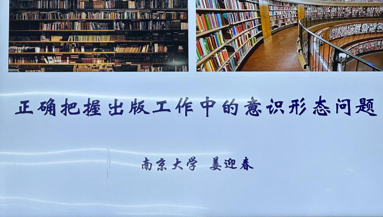 本次讲座,姜迎春书记主要从出版工作的意识形态功能、我国出版领域存在的意识形态问题、学科意识形态问题对出版工作的渗透侵蚀、积极应对出版工作面临的意识形态挑战四个部分来展开。