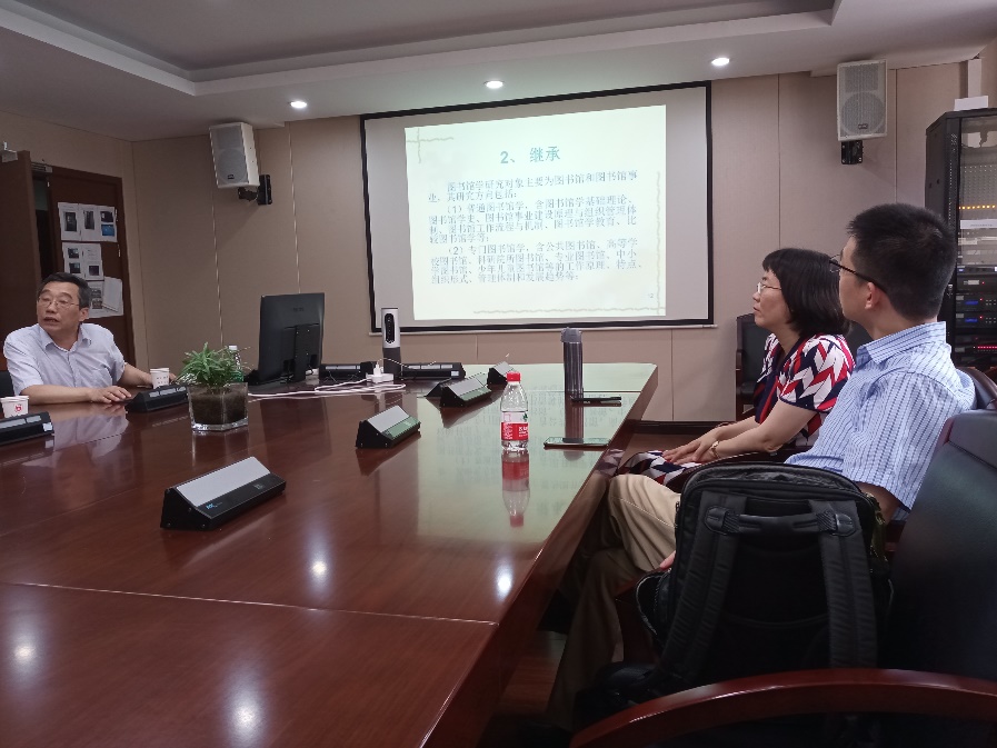 叶继元教授主持,出席者包括谢欢副教授、陈铭副教授及在校研究生十余人。