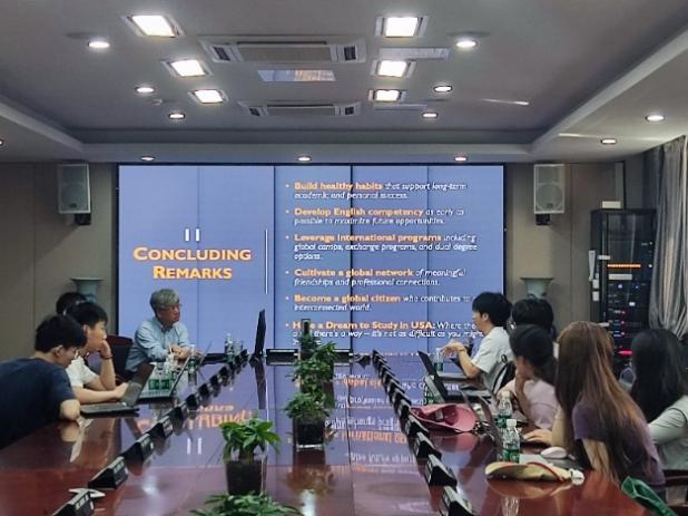 在第三场讲座中, Sam Oh教授做题为全球学术领导力构建方略(Building Global Leadership)的报告,就培养全球领导力的关键要素、全球高校的交换项目、及个人求学经历等内容进行分享。Sam Oh认为,规律作息、持久阅读与适度运动才能在学术的道路上走的更远。他鼓励青年学者们以母语的方式拥抱英语,积极参加交换项目,主动融入多元文化。