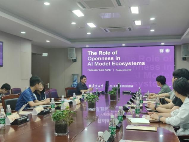 教授、副院长康乐乐做题为开放机制在AI模型生态系统中的赋能作用(The Role of Openness in AI Model Ecosystems),深入探讨了开放与封闭创新模式对AI发展的影响,以及大型语言模型(LLMs)对知识交流的深远意义。