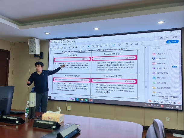 讲座进入互动环节后,师生们踊跃提问。不少同学就实验设计的细节、变量控制方法以及研究的推广价值等问题展开深入探讨,孙博士一一细致回应,既分享了自己的研究体会,也鼓励同学们在选题和方法上大胆探索、勇于创新。胡广伟教授亦就研究的管理学意义与应用前景作了精彩点评,并对孙博士的工作给予高度评价。此次讲座不仅展示了数字消费领域的最新研究进展,也为师生们提供了宝贵的学术交流机会。