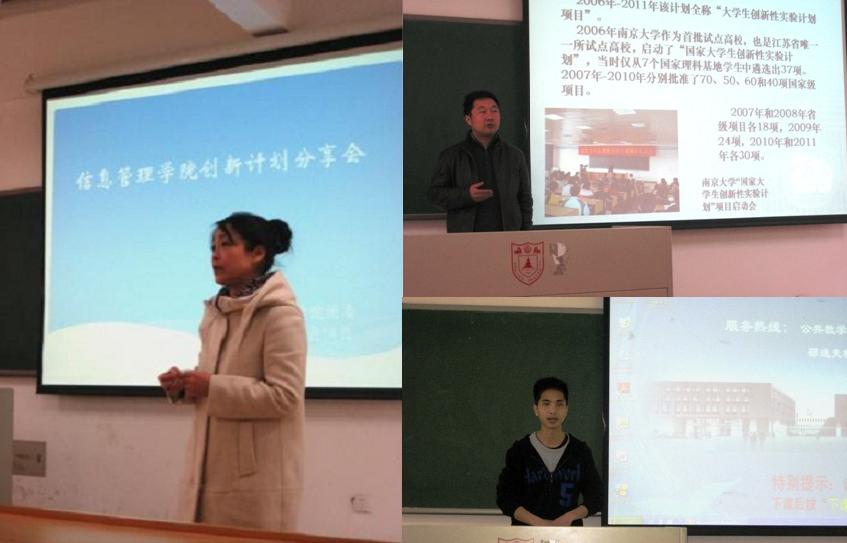 3月14日中午,由学院团委组织举办的“2012年度大学生创新训练计划项目分享交流会”在仙林校区举行。学院副院长陈雅教授、教务员薛祯祯老师以及学校教务处实践科的吴凯老师参加了这次分享交流会。这也是继去年“科创讲堂”之后,今年教务、学工再度携手,围绕学院“大学生科创素养提升工程”开展的具有较强实践指导意义的专题活动。