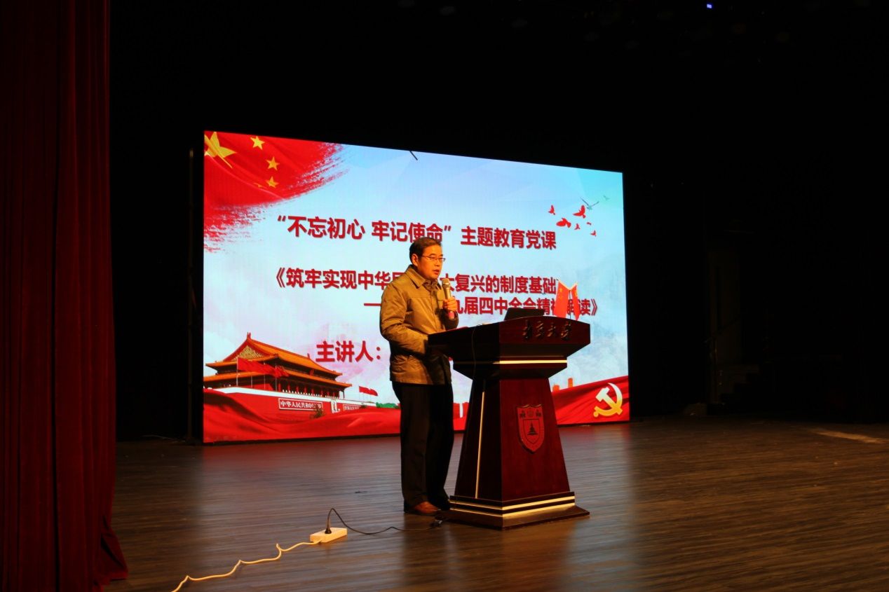姜迎春同志的党课主题是《筑牢实现中华民族伟大复兴的制度基础——党的十九届四中全会精神解读》。作为马列主义研究专家,他结合个人学习经历和感悟体会,带领师生们集体学习了党的十九届四中全会精神。他说,党的十九届四中全会彰显了党领导人民推动革命建设和改革在目标上的一致性,尤其是突出了制度建设的重要性。当前我国处于建设和改革的时代,如何建立、建设、发展和完善社会主义制度是改革的共同目标。同时,四中全会还彰显了党领导国家和人民参与全球化、参与推动全球治理的制度优势和制度基础。四中全会是党不断推动伟大斗争的聚焦点和着力点,进行斗争的关键点是制度、聚焦点是制度、着力点也是制度。姜书记分享了他对制度优势的理解,并围绕十三个制度体系进行了分别解读,认为这些制度优势充分体现了我们党对规律的认识、把握和运用。制度的科学性、有效性、发展前途和和生命力取决于制度反映了社会发展的规律,具体表现为共产党执政规律、社会主义建设规律,表现为对人类社会发展规律的认识、把握和运用。